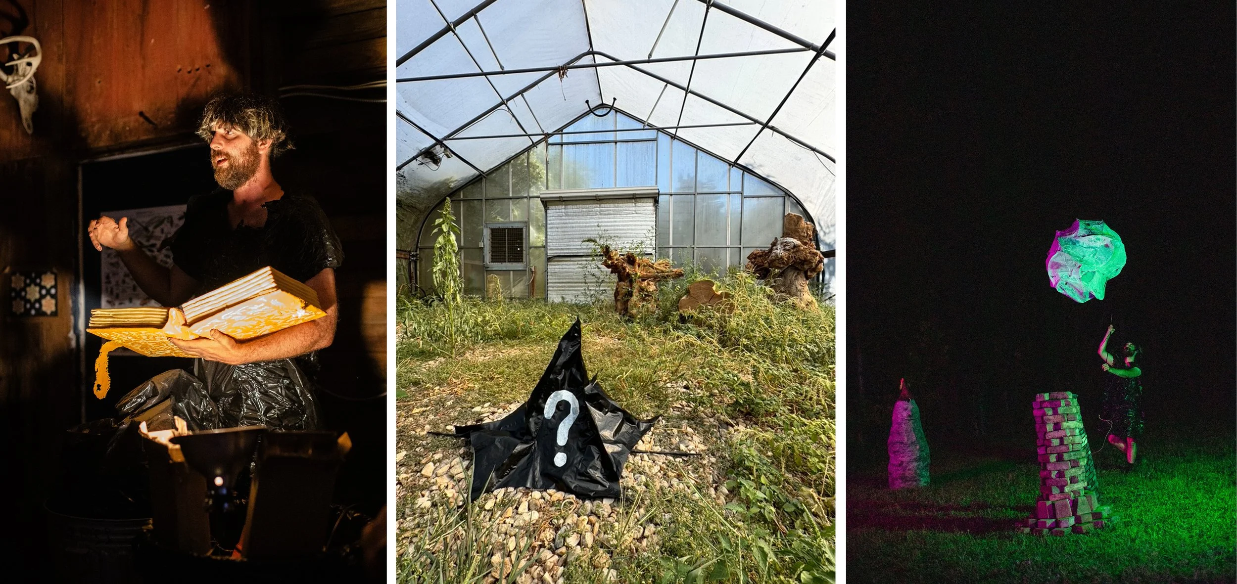 To Live a Loving Life is a work of interactive performance that changes form depending on its context, location, and audience size. It is the third and most fully realized incarnation of Azguyeinqainaen! to date, after Fool’s Window and Return to FOREVERHOUSE. As of 11/19/2025, the most current incarnation of To Live a Loving Life has been staged at Folly Tree Arboretum in East Hampton, New York, to audiences of 25 people at a time. The work currently has its next planned incarnation at Bread and Salt in San Diego on March 20th, 2026 as a part of their “Salty Series.” The core of To Live a Loving Life is a magical realist reflection on the aspects of “Self” that I often try hardest to conceal. Throughout the work, shadows emerge as fogbroods, tiny bastards, idiot mystics, and cosmic voices. Regardless of whether it is happening in a living room or an arboretum, it is a journey with many guides, the most significant of all being the choices of the Audience and the contributions to the work by the people that care most about me.